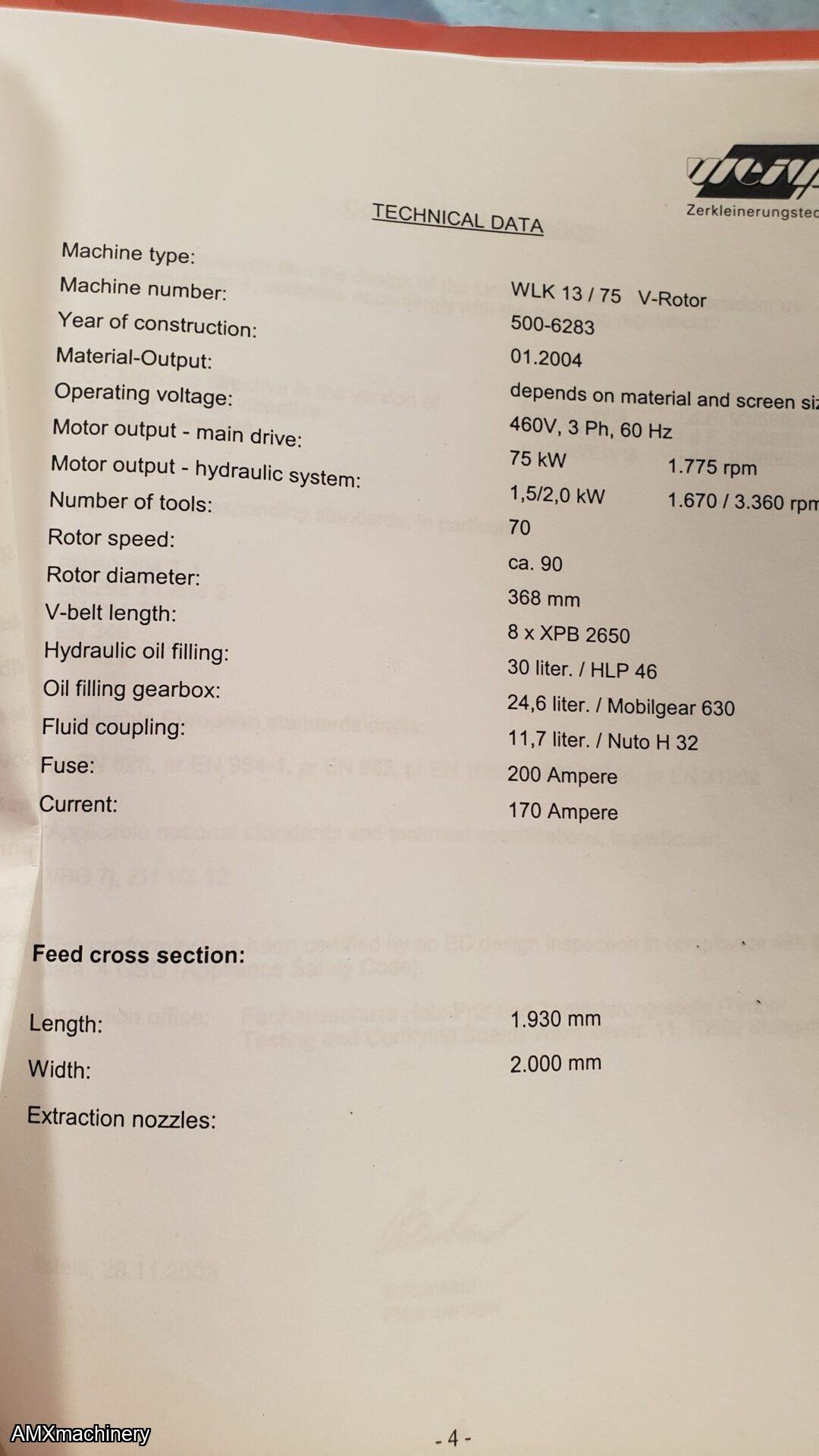 2004 Model WLK 13/75 Low Speed, Hopper Style
