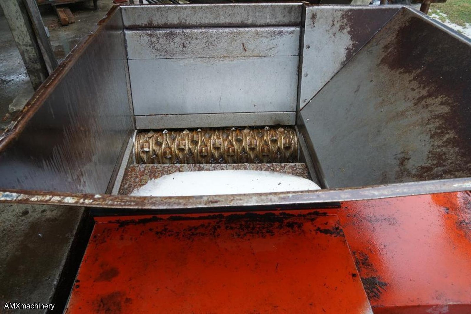 Batch style with 75 HP low speed rotor, top feed hopper, self contained hydraulic system with hydraulic ram, and controls.