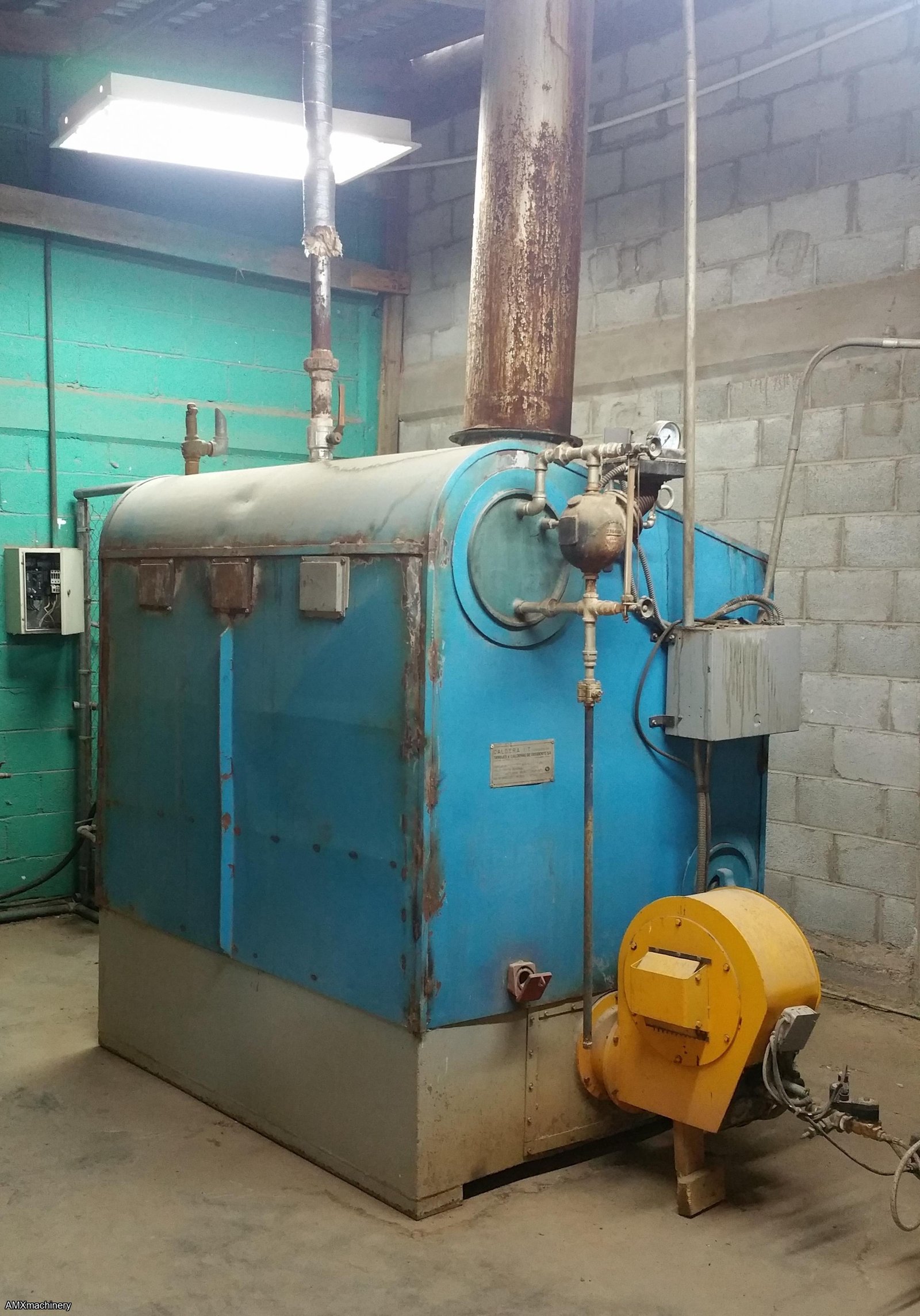8 - CALDERA DE GAS. 100 HP PRODUCE VAPOR PARA LA PRENSA DE 8 PLATOS QUE REALIZA EL ARMADO DE TRIPLAY, CON MOTOR DE 15 HP Y TIRO DE 5MTS. COMBUSTIBLE GAS LP.