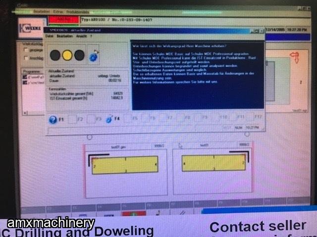 There are two separate workstations on the machine capable of processing two parts independently (left-hand and right-hand), or one large part. The machine has one set of CNC controlled processing aggregates with horizontal drilling and dowel driving capabilities.