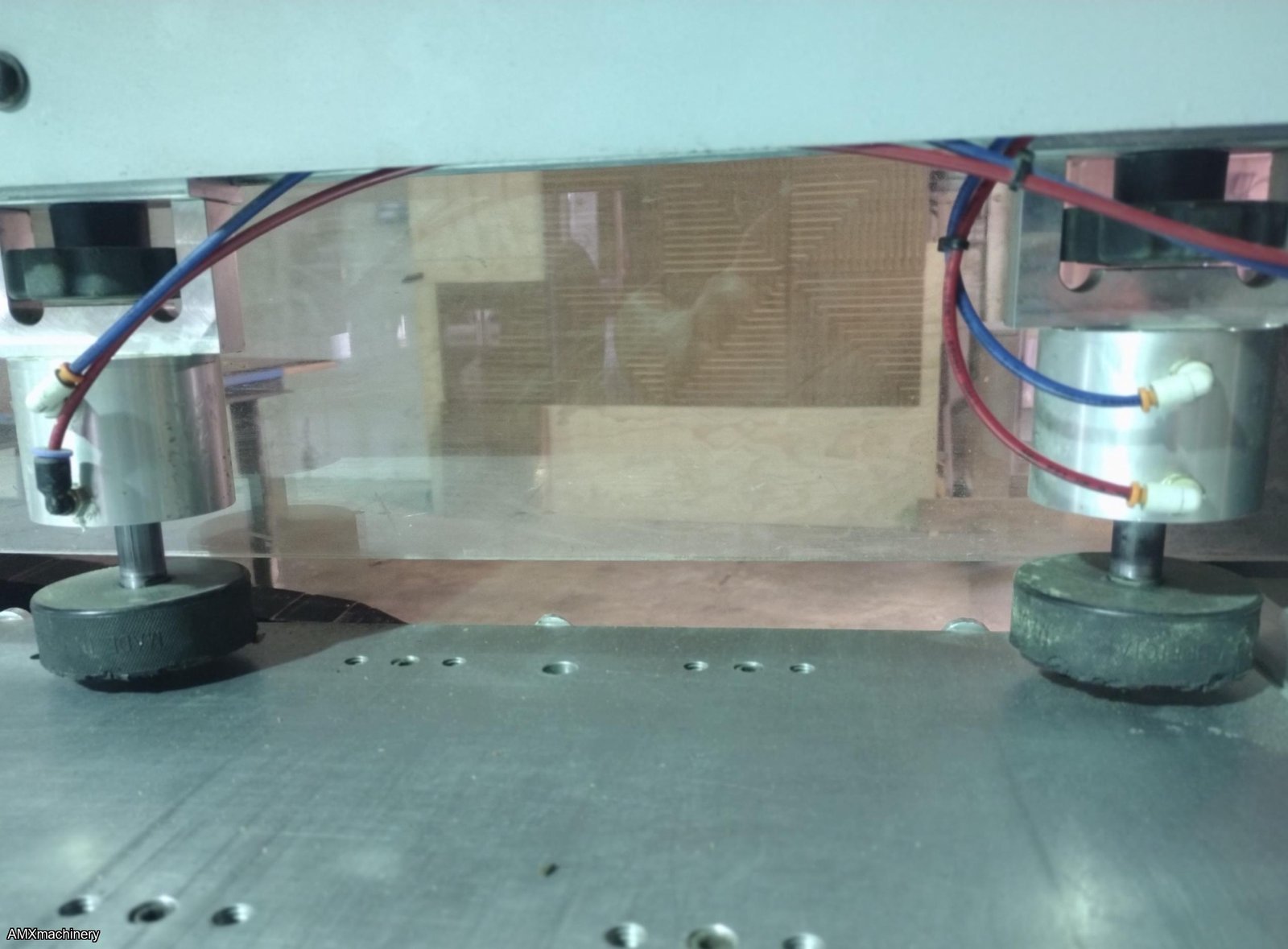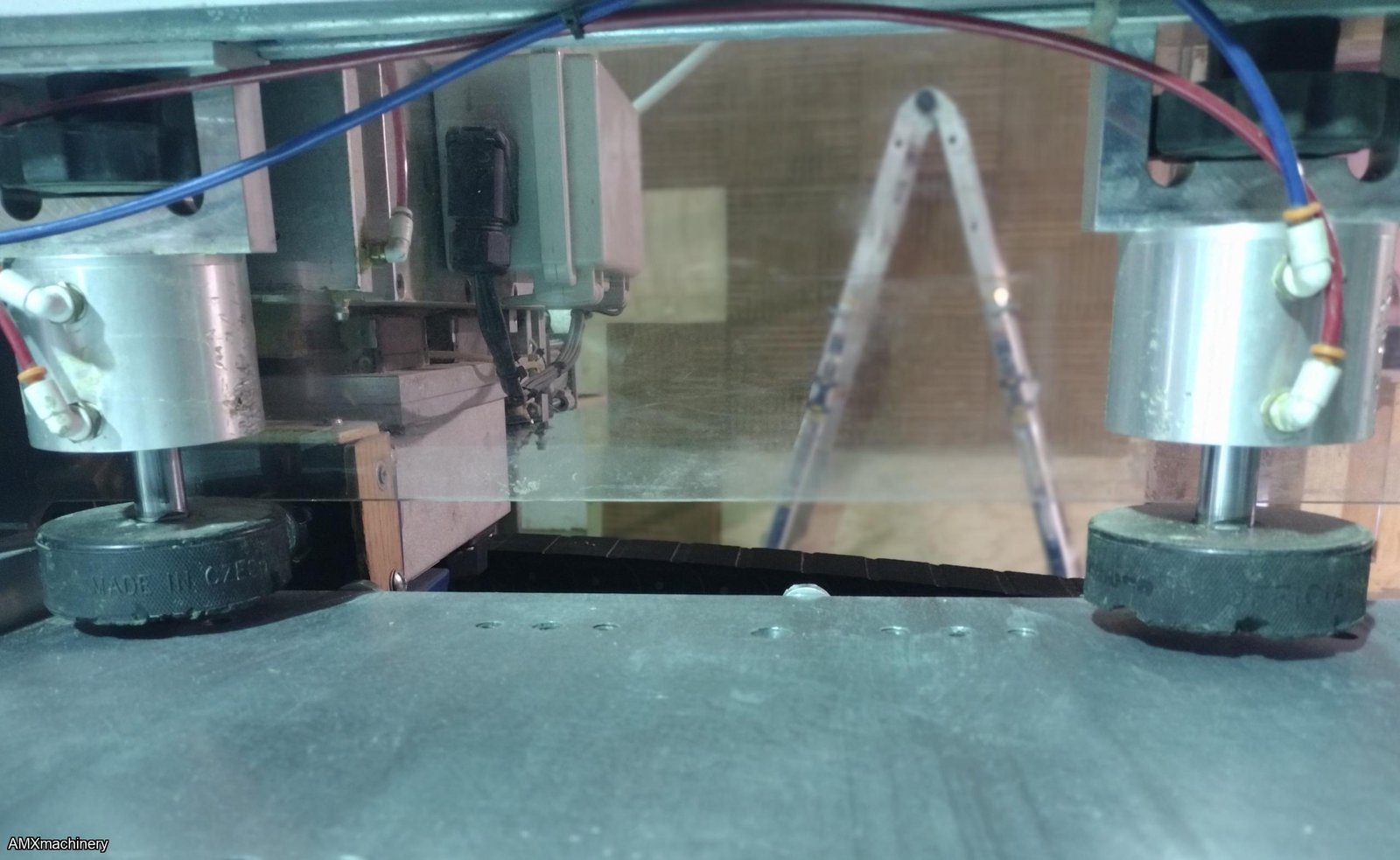 12" Diameter vibratory dowel bowl mounted above machine (holds 800 dowels)
