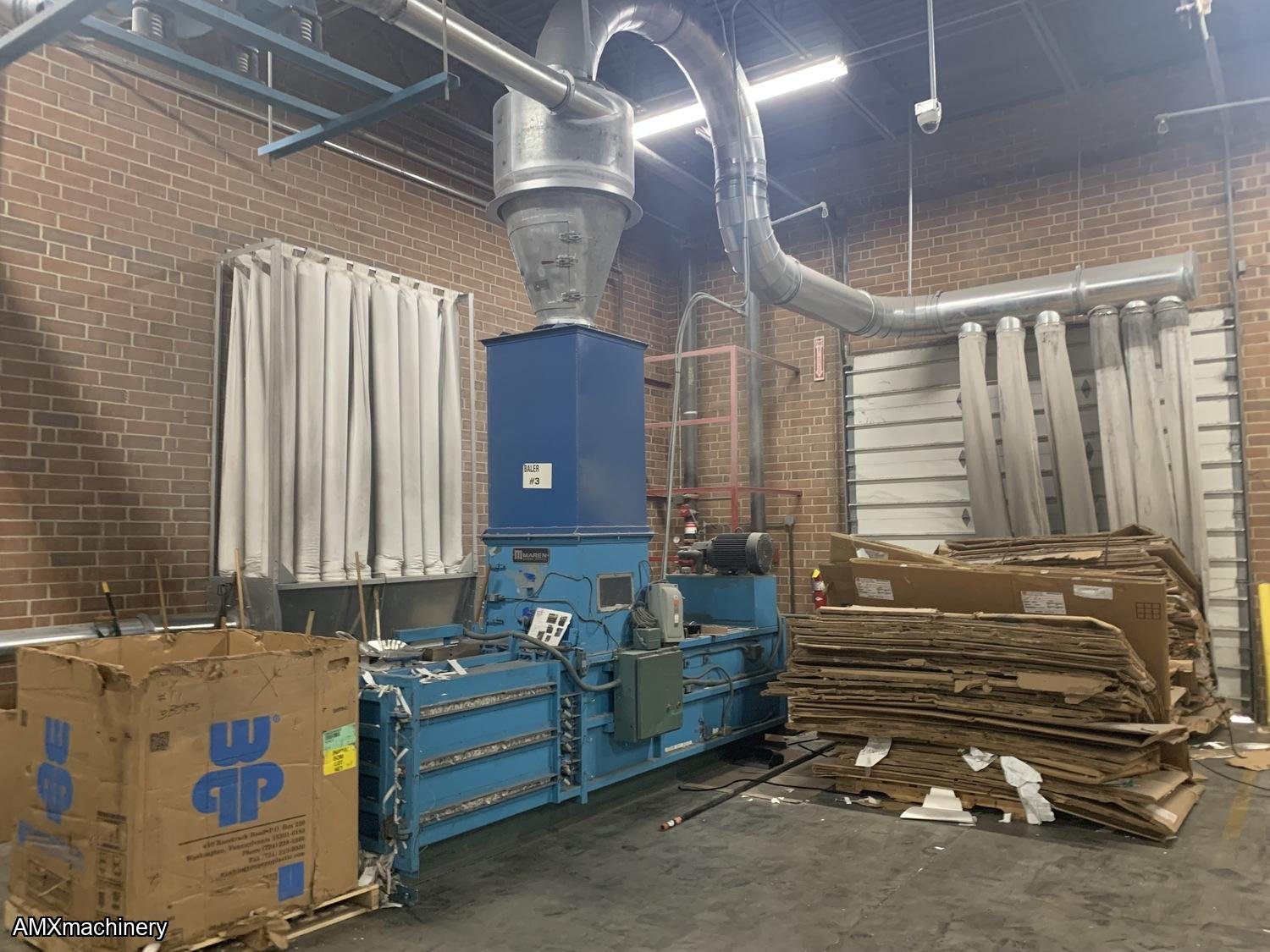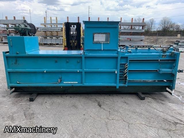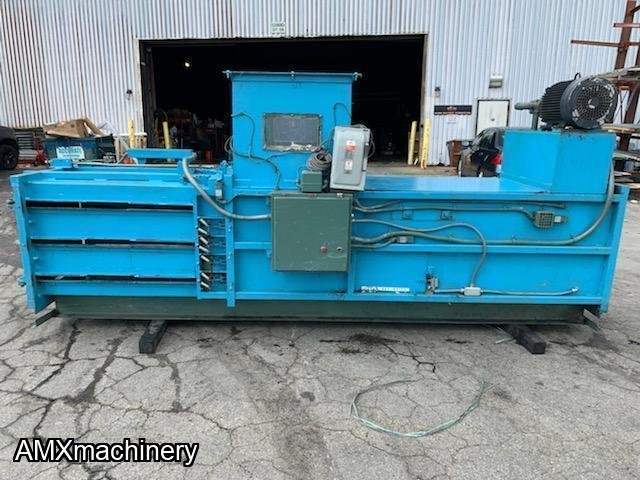 Fully automatic baling cycle with start-compress-and-stop action, requiring only a part-time operator to tie-off bale and open ejector door. Bale automatically gets ejected as new bale is being formed. Saves space and money.
