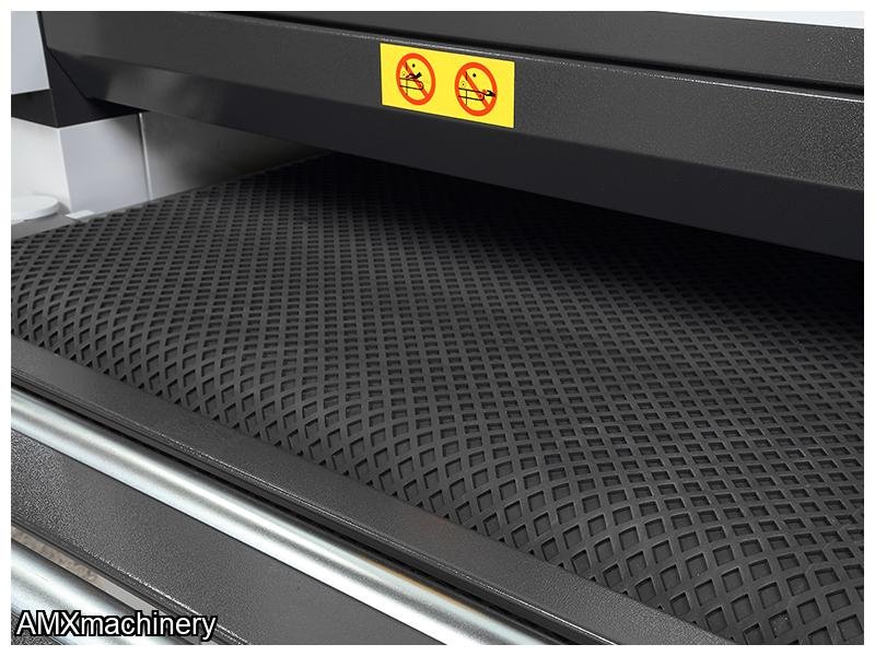 • Dual rubber covered pressure rollers on infeed and outfeed for consistent material hold down.