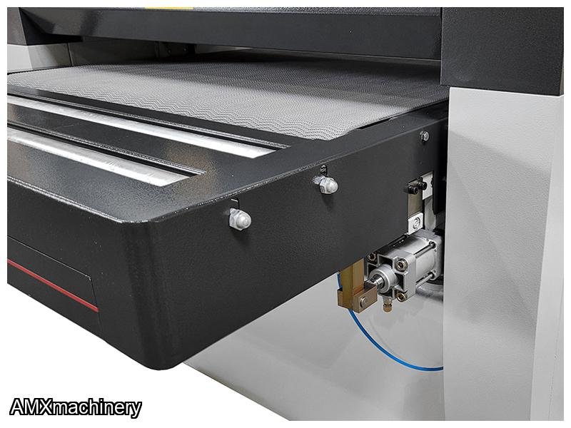 • Pneumatic belt tensioning with quick release outboard support to facilitate fast belt changes.