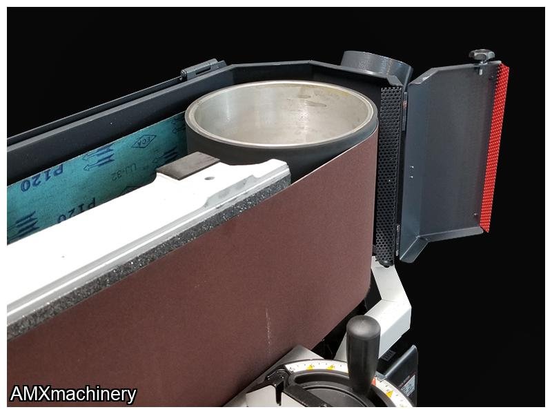 • 48” x 9 ½” cast iron platen is covered with graphite cloth providing a wide & stable sanding area which is perfect for doors, furniture parts, and even longer parts