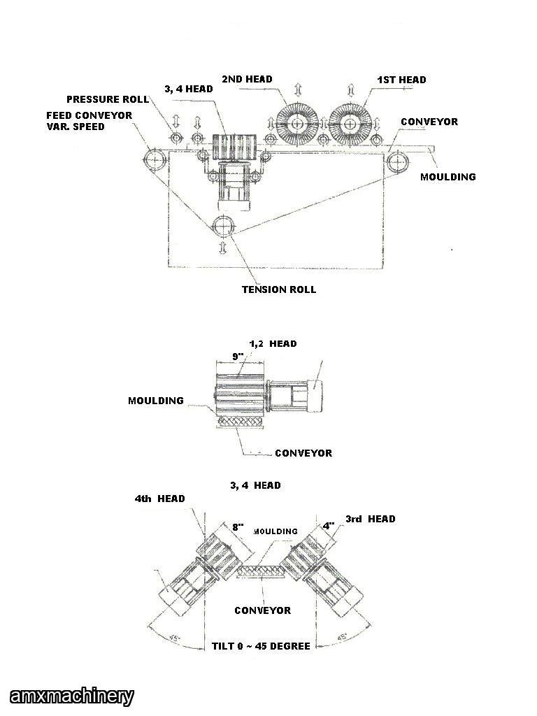 Side sanding head can be adjusted tilt, forward & backward and up & down.