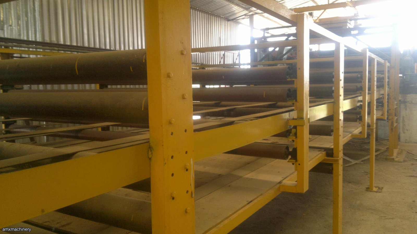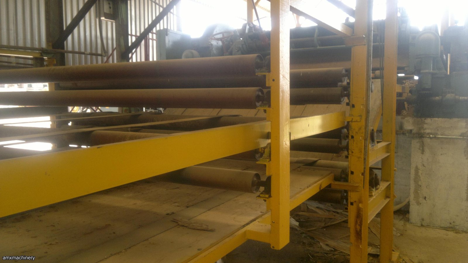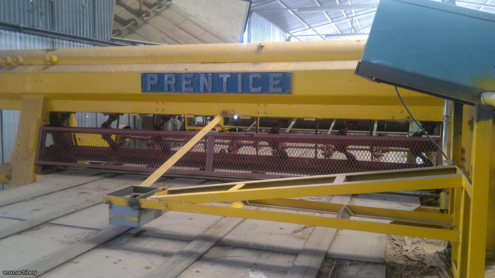 6 - MESA VERDE PARA TORNO DE 8 PIES CON 3 CAMAS DE BANDA Y GUILLOTINA A LA SALIDA MARCA PRETINCE