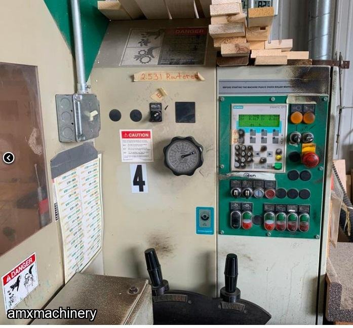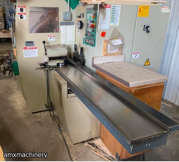 Infeed/Tables: 2 M (6’6’) infeed with side pressure roller. Chromed tables Manual table lubrication pump.