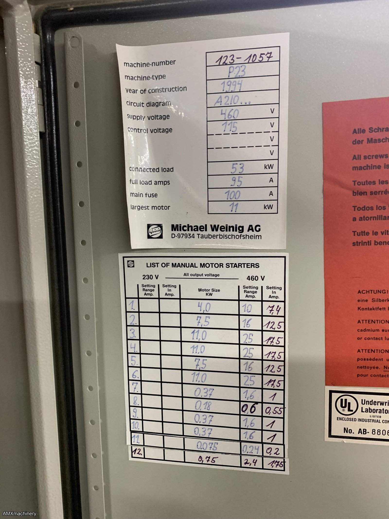 Falta cambiarle 1 pieza - cotización Weinig USA - $ 1,171 USD