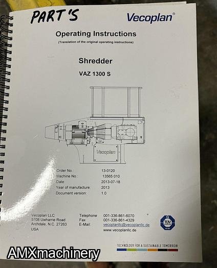 PARTE: 12591 - TRITURADORA - ASTILLADOR MADERA - 100 HP – VERTICAL – VECOPLAN