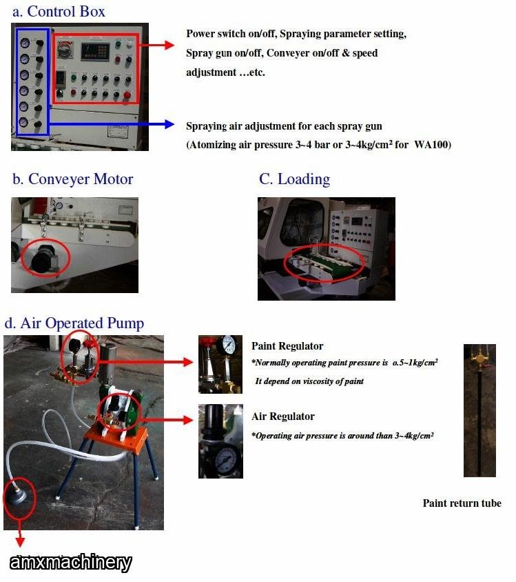 The spray guns are controlled by photocell sensor for auto spray time and saving the spray material.