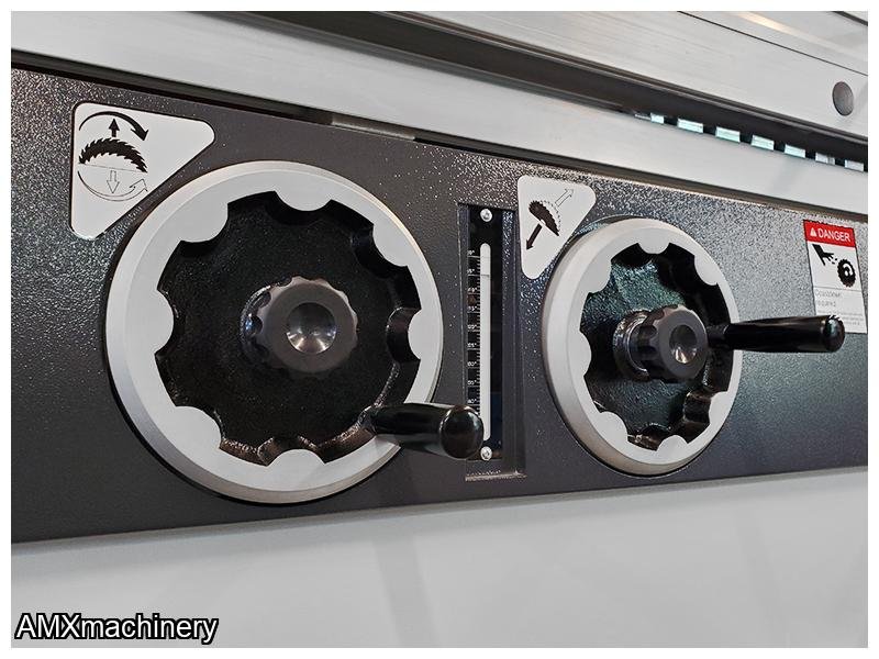 • Manual saw blade rise/fall & tilting, conveniently located on the operator side of the machine