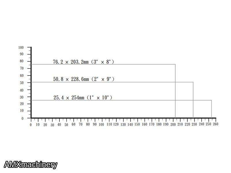 1″ x 10″, 2″ x 9″, 3″ x 8″ |