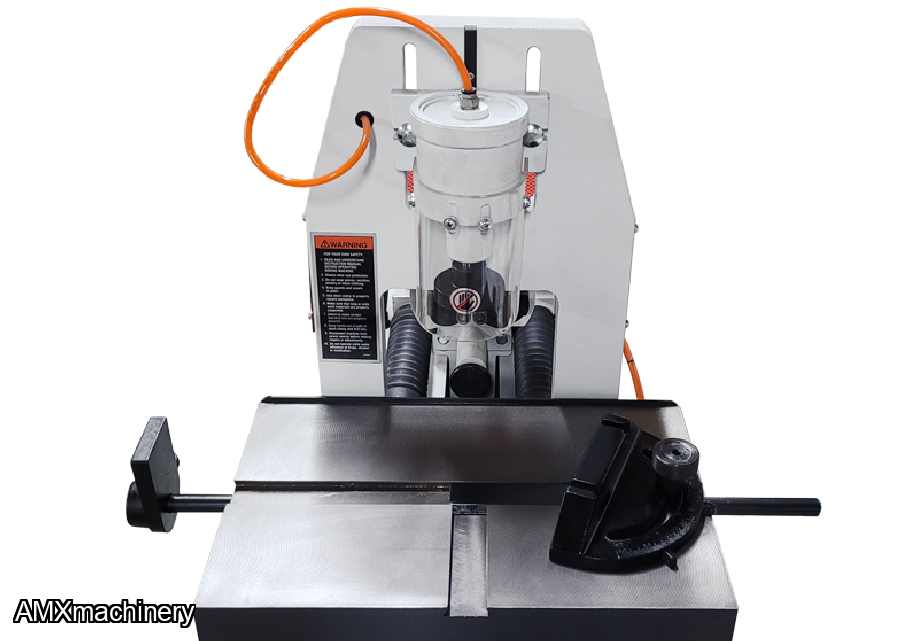 With its two spindle drilling head with adjustable drill centers from 0.71”~3.93” centers (18~100mm), you can conveniently drill dowel hoes with ease. The drilling assembly and table are made from cast iron for maximum rigidity and durability. The unit is mounted to a fabricated steel base for optimal functionality. The drilling cycle is controlled by a pneumatic cylinder and is actuated by a foot pedal for operator convenience. The drilling speed is adjustable for optimal cycle speeds. The drilling head is driven by a powerful 2HP direct drive motor. A pneumatic clamp ensures the work piece is held firmly during drilling operations.